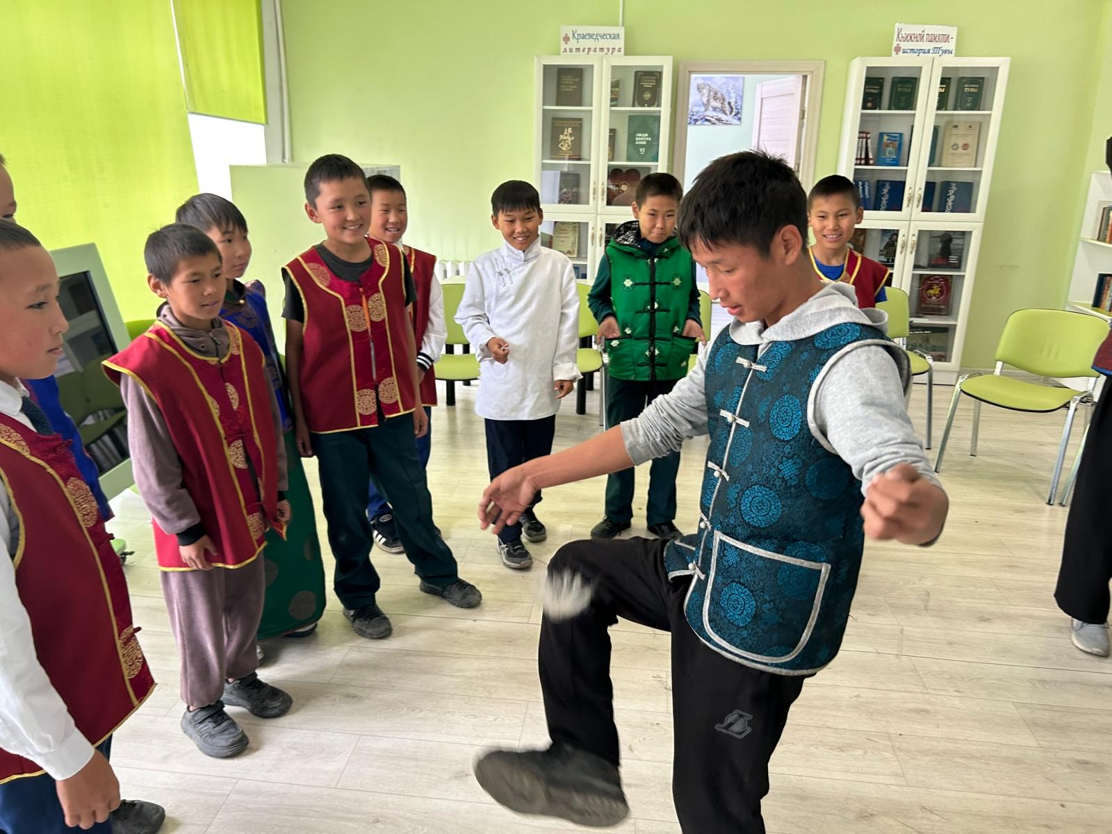 Сегодня, 6 октября руководитель клубных формирований Дворца культуры Чечекей Падан и ответственный секретарь местного Хурала представителей г.Ак-Довурак Анай-Хаак Алдын-ооловна Донгак провели мастер-класс по плетению маскировочной сетки для людей старшего возраста к объявленному Году Защитника Отечества Республики Тыва.